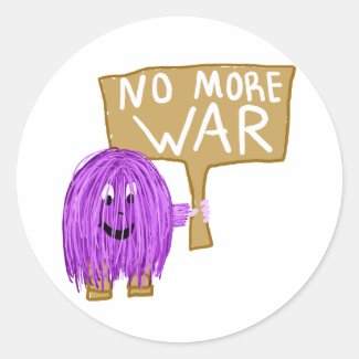 Zazzle sticker from peace people: Purple No more warthis purple peace person says NO MORE WAR!!!!Visit PeacePeople's storeJoin PeacePeople's fan club |